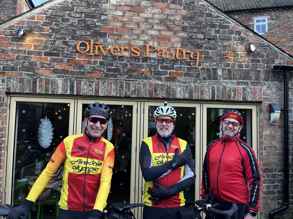 At the cafe stop (Oliver’s pantry in Ripon) the two groups briefly met, the SRAN group was just leaving as we arrived. We enjoyed our first visit to this cafe, the food was good and the service provided by our waitresses Alison and Veronica was excellent. It was agreed that Oliver’s Pantry should be added to our list of AOCC approved cafes.