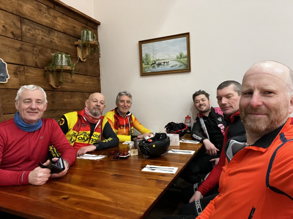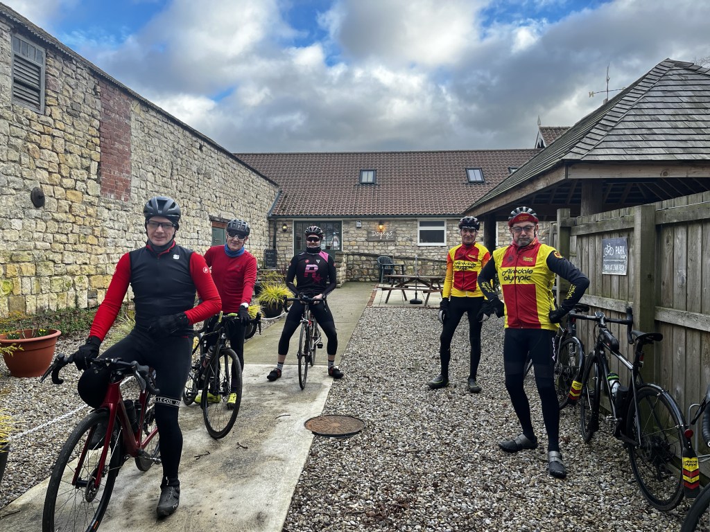 Six riders met up this morning for a ride out to Doyly’s Cafe at Bolton Percy. We set off at a decent pace with everyone feeling surprisingly good until we realised we had a strong tailwind and consequently a 30 mile return leg with a 20 mile an hour headwind.