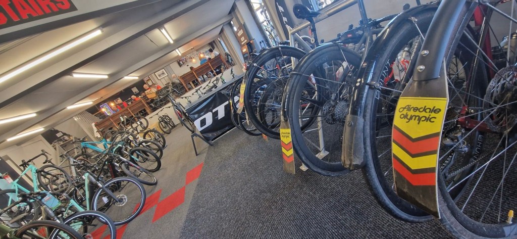 We had all anticipated that Ian would be excited when he arrived at Paceline Cycles, but seeing him enthusiastically examining the bikes on display, grinning like a Cheshire Cat was a sight to behold.