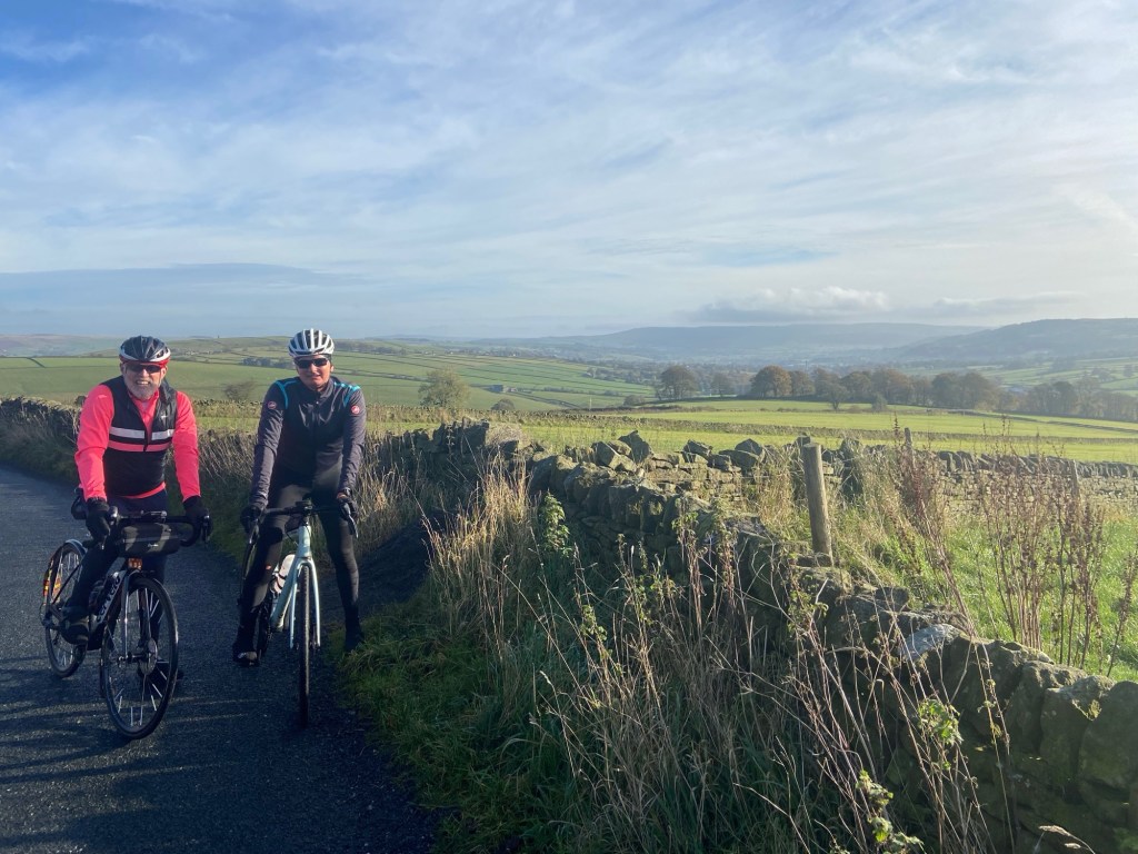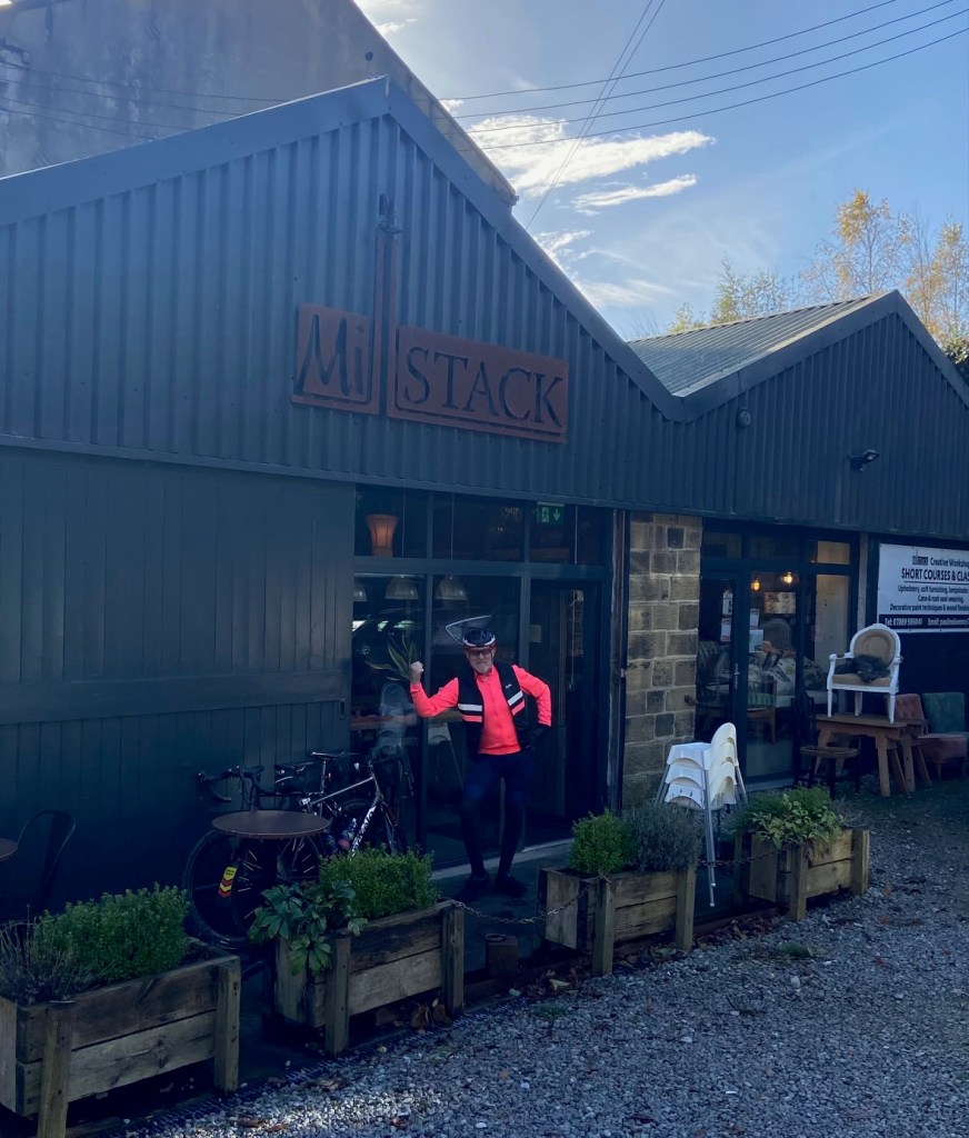 5 AIR riders met at Rawdon, Jonathan and Nick due to time constraints (or maybe they had seen the elevation profile of the route) were only going up the valley for an early return. Dom, Kim & Alan setting off for Oakworth and the Mill Stack Cafe agreed a steady pace would be the order of the day. The weather improved as the roads went up, and up and up. The route from Glusburn over to Laneshaw Bridge and to Oakworth was a tough one but the views across the moors were stunning in the Autumn sunshine and very much worth the effort.