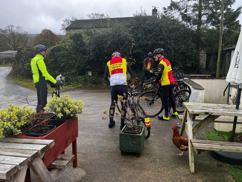 On an overcast and miserable looking morning, four riders met at Rawdon. This week’s plan was to cycle to the farm shop in Cracoe. We were expecting Hamish until we received word that he was running late and that he would catch us up (not a chance we thought, not with the elite peloton that we had assembled).