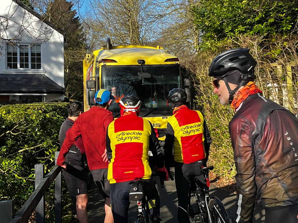 It was a steady uneventful ride until we approached the cafe, where we were confronted by a bin lorry struggling to reverse down a road that was only just the width of the vehicle. The driver’s bad day was made complete when one of his tyres exploded with a big bang.