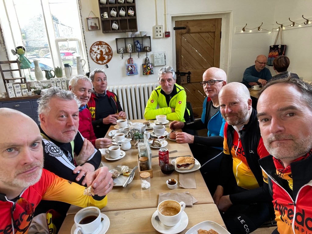 The sun was shining down on Airedale Olympic this Saturday morning as eight riders met up for the club ride, destination Hebden Tea Room.