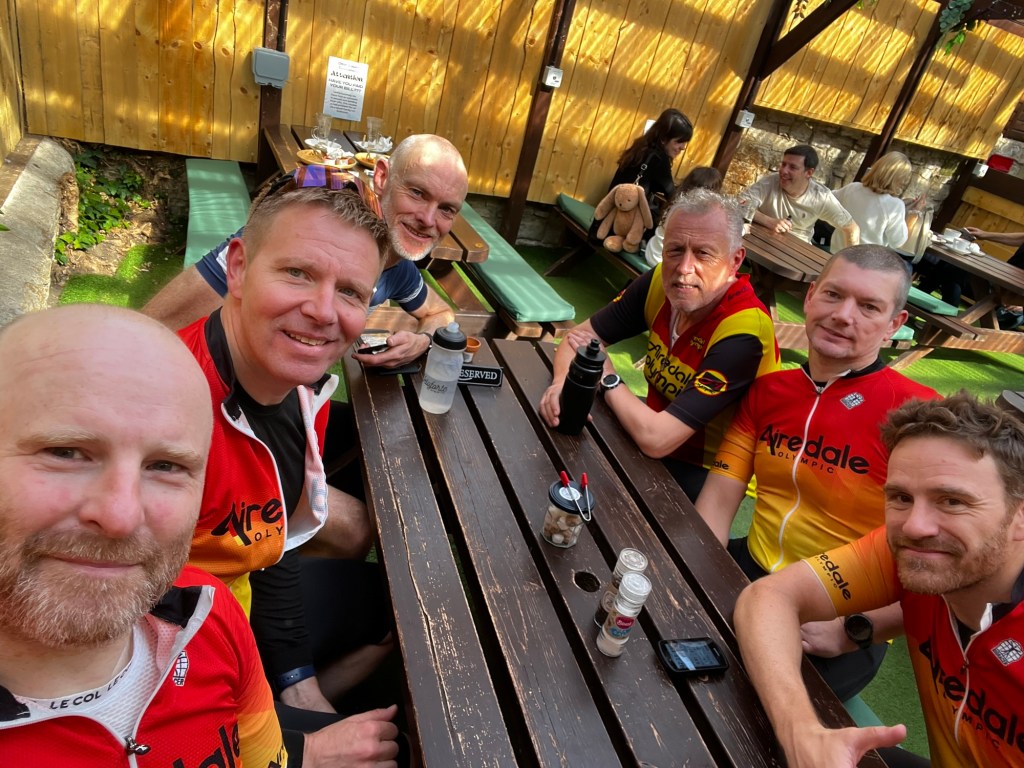 I wasn’t disappointed, mainly spurred on by Nathan, Hamish and Dan we made light work of the 35 mile ride out, arriving at the cafe with an average speed of over 17 miles an hour.